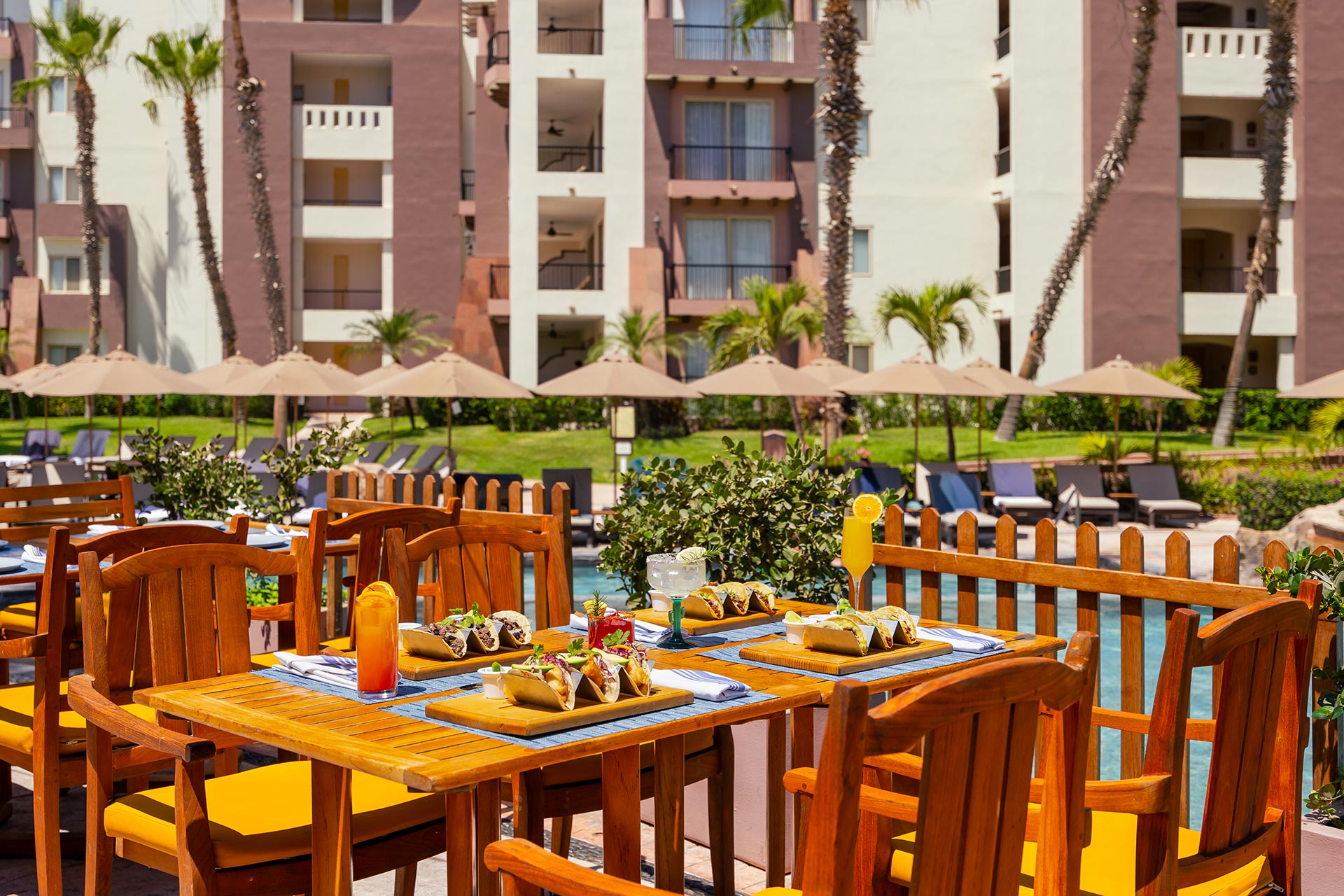 Tradicional taquería al aire libre y junto a la alberca que ofrece una variedad de tacos al pastor, camarón, pescado, res y pollo. Disfrute de los auténticos tacos mexicanos.